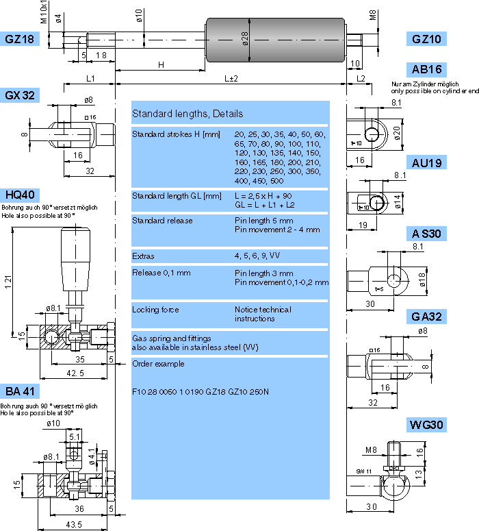 Elastic locking Gas spring F 10-28